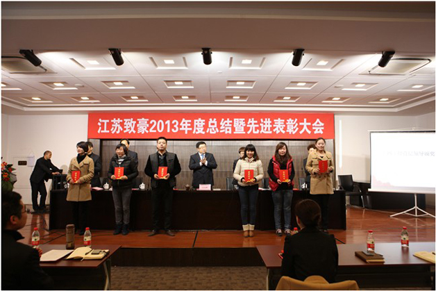 2014年1月23日,江蘇致豪召開2013年度總結暨先進表彰大會,致豪地產、致豪營銷全體人員和乾通物業、致豪農業主管以上人員參會。會議表彰了2013年度為江蘇致豪發展不辭辛苦、無私奉獻的最佳團隊和先進員工,號召全體員工以先進典型為榜樣,在工作中掀起學先進、趕先進、比先進、當先進的新熱潮。