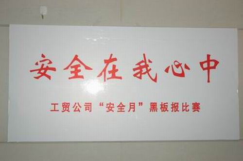 南通工貿(mào)公司在安全月活動(dòng)中,組織各集約化管理片區(qū)企業(yè)舉辦黑板報(bào)比賽。比賽以“綜合治理、保障平安”為宗旨,體現(xiàn)了“安全在我心中”和“以人為本、關(guān)愛(ài)生命”的崇高主題,具有內(nèi)容健康、創(chuàng)意新穎的特點(diǎn),頗受參觀者好評(píng)。