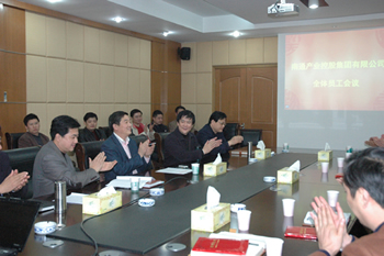 陳董事長指出,產控集團在過去一年取得了很好的成績,是所有部門和全體員工共同努力的結果。2009年宏觀經濟環境復雜多變,困難大,任務重,董事長要求全體員工做到“三講、三抓”: