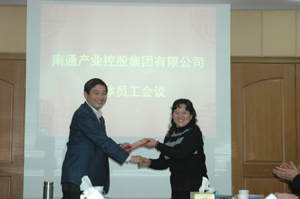二月十三日下午,產控集團本部召開員工大會,對上年度先進工作者以及被上級機關表揚、表彰的部門和個人進行表彰。陳照東董事長給受表彰的部門和個人一一頒獎。