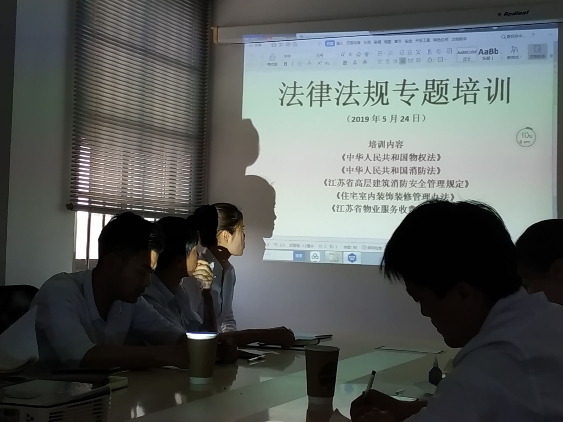 為迎接“安全月”到來(lái),加強(qiáng)物業(yè)安全管理,南通國(guó)城投資發(fā)展有限公司于5月24日下午13:30時(shí)在國(guó)城生活廣場(chǎng)B幢402會(huì)議室組織了法律法規(guī)的專題講座,公司物管中心及金科物業(yè),綠城物業(yè)全體管理人員及部分保安人員參加了本次培訓(xùn)。