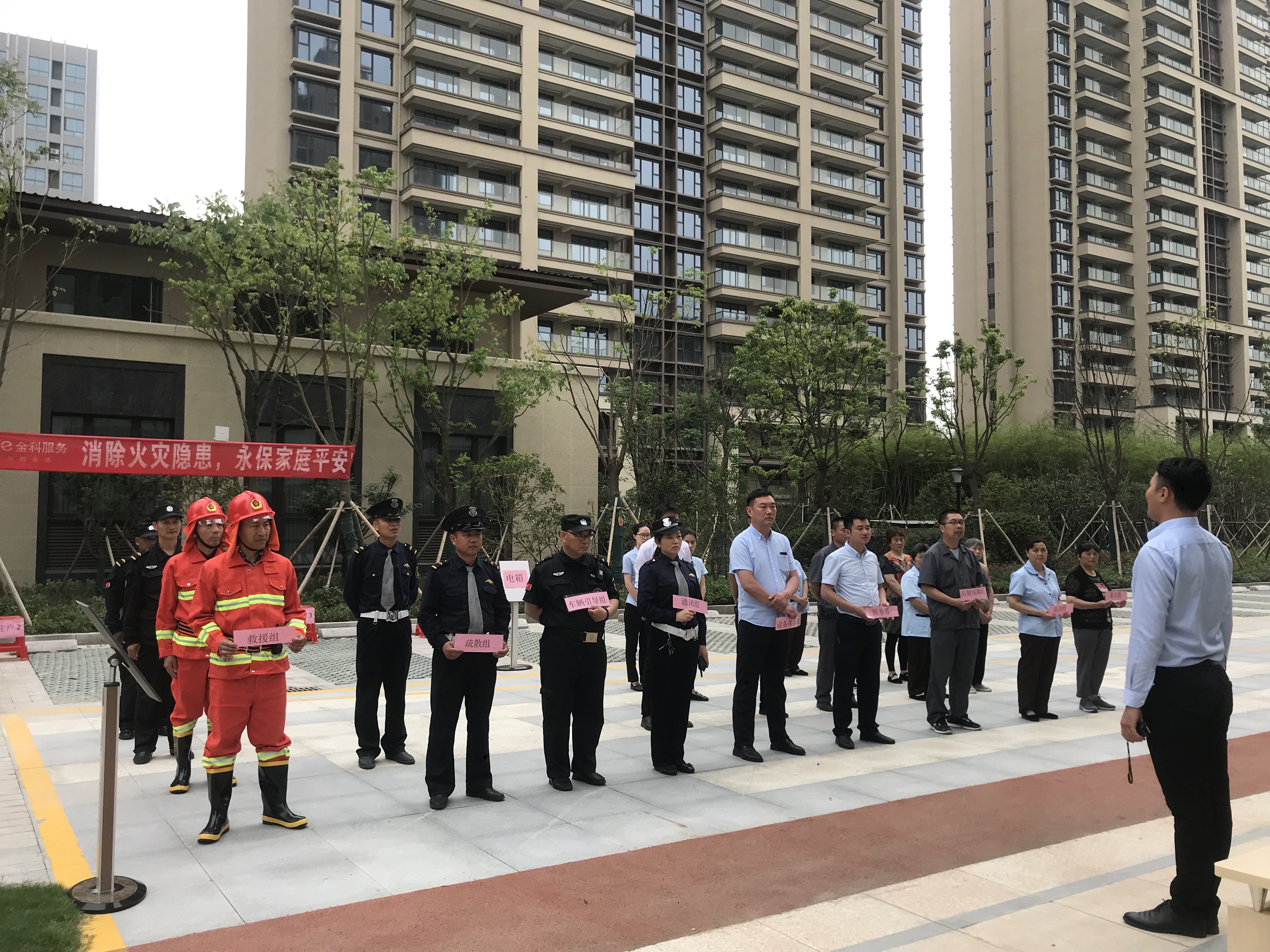 本次活動圍繞救援、疏散、培訓業主滅火自救、消防器材使用比賽、車輛引導、通訊保障、設備保障、后勤保障等多項安全內容展開。首先對全體人員進行了消防安全知識技能培訓、并進行現場實戰演練,前后銜接連貫,成功快速的疏散了現場客戶,培訓了業主的自救能力,取得了預期的效果。