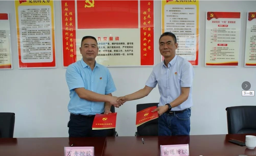 為進一步加強黨建工作,深化黨建工作內涵,豐富黨建工作手段,創新黨建工作方式,圍繞中心工作,服務發展大局,充分發揮黨建引領企業發展之作用,7月4日上午,南通紡織控股集團紡織染有限公司黨委與浙江萬舟控股集團有限公司黨委在萬舟控股集團黨員活動室簽署了《黨建結對共建協議書》。 浙江萬舟是一家以專業研發生產時尚面料、紗線為主業,集實業投資、資產投資、棉花收購、進出口貿易等多元化綜合發展的控股集團企業,是省重大產業項目。旗下擁有浙江佳而美紡織有限公司、浙江蘭棉紡織有限公司、浙江萬舟進出口有限公司三家子公司。