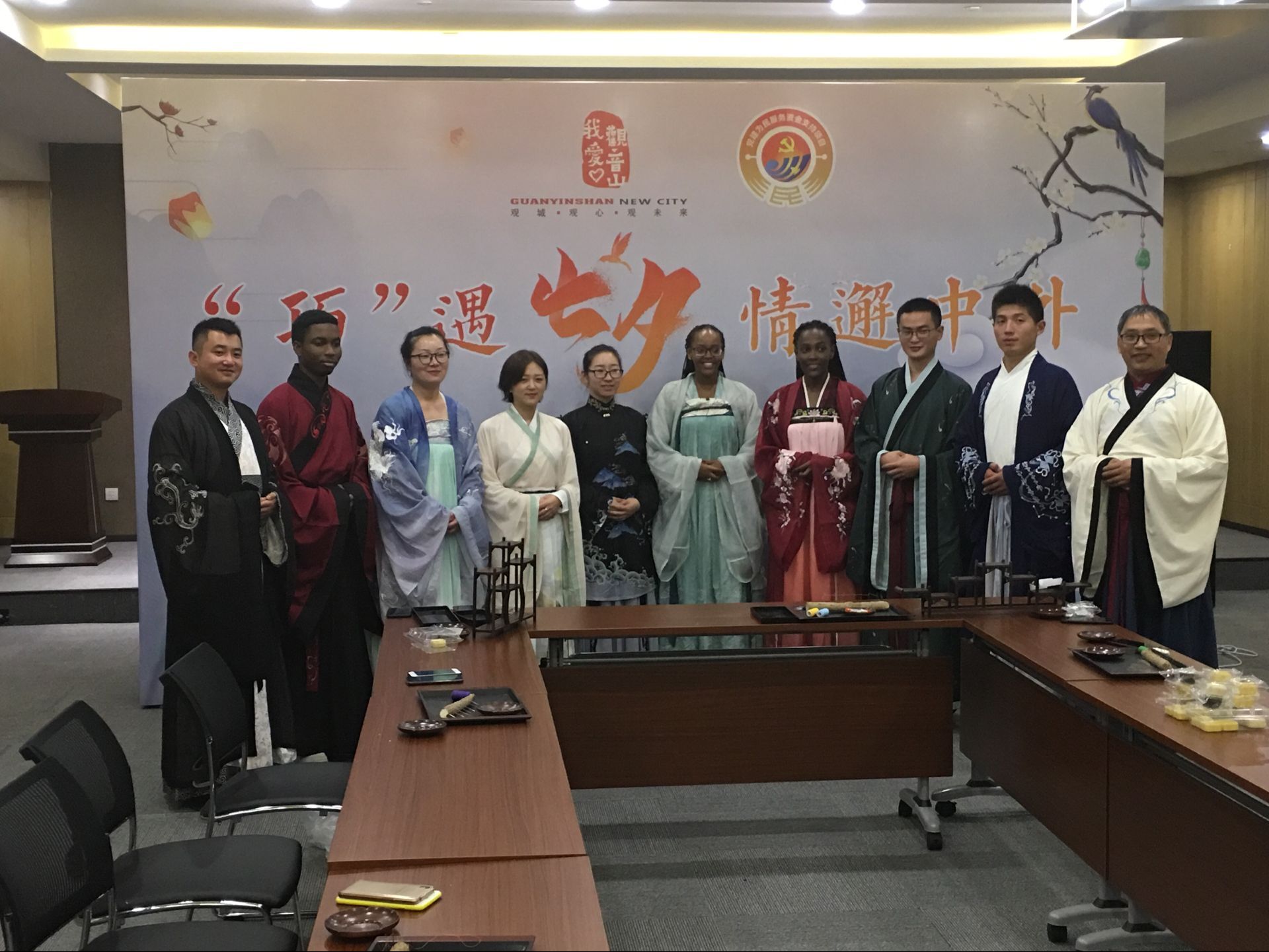 這次活動吸引了觀音山新城、國城廣場、國城璟府等社區及相關外籍來賓前來參加。本次活動圍繞七夕的由來、漢服的由來及穿戴、中國功夫茶、鵲橋搭建、中國糕點文化及糕點品鑒等展開,內容豐富多彩,場面和諧熱烈。