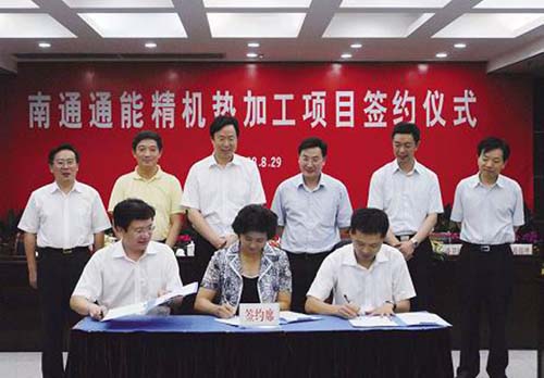8月29日,南通科技與通州平潮鎮政府成功簽約“南通通能精機熱加工”項目。這一總投資達10億元的熱加工項目的成功簽約,標志著南通科技生產經營發展方向的新突破。該項目主要從事鑄件、鍛件、鈑金、機加工及金屬材料熱處理等生產經營,預計明年底竣工投產,三年內可形成年銷售20億元以上規模。