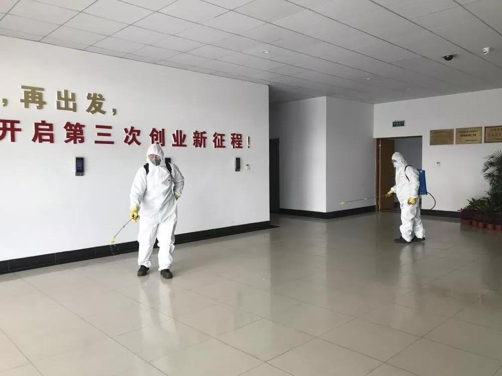 江山股份對各區域、人員的個體防護和區域消毒等措施明確了標準;各部門按屬地管理原則明確各項措施的責任人和監督人,努力保證各項防控措施的有效落實。農二事業部保障車間按照公司要求,組織人員對公司食堂、通勤、更衣室、宿舍、辦公樓等公共區域進行消毒,做到每天各點消毒至少2次,消毒采用84、酒精等消毒液。