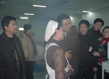 帶著市委、市政府的親切關懷,市委書記羅一民在有關部門、產控集團負責人陪同下來到企業一線慰問,他一邊察看企業生產情況,一邊與職工親切交流。生產組長朱玉玲顧不上擦臉上的汗,她笑著告訴羅書記:“企業效益還不錯,雖然忙了點,但干得高興,我們上下一條心,一定把這個企業建設得更好。”對職工們高漲的工作熱情,羅一民高興地蹺起大拇指。他動情地說,我們每次走訪困難企業,既是慰問也是學習。許多困難企業的領導班子奮發進取、默默奉獻,這正是新時期南通精神的具體體現,也是企業危中搶機、生存發展的最大動力源泉。他祝愿在新的一年,企業全體干部職工繼續齊心協力,取得更好的發展成果。他還要求隨同慰問的經貿委、總工會等部門同志,多關心困難企業和困難職工,切實為他們解決實際困難。