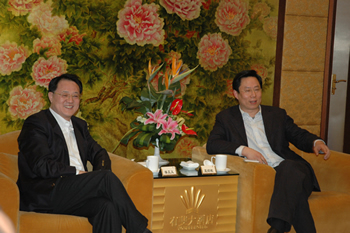 市經貿委主任楊揚、國資委主任李桂順、中化國際副總經理覃衡德、李大軍和集團董事長陳照東、總經理陳金明等參加會見。