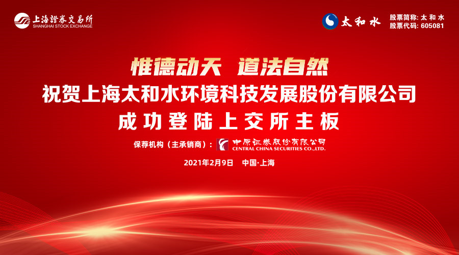 2021年2月9日,南通市產業投資母基金發起參股的南通國信君安創投基金投資企業上海太和水環境科技發展股份有限公司(以下簡稱“太和水”)在上海證券交易所掛牌上市交易,成功登陸A股主板(股票代碼605081)。本次公開發行1953萬股,發行價43.30元/股,新募集資金約8.45億元,發行后總股本7810.14萬股。