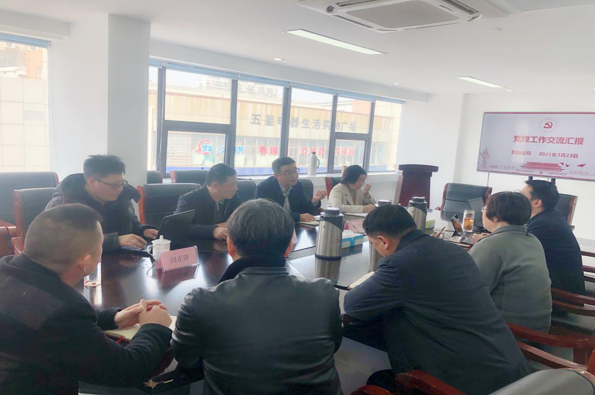 3月23日下午,江山股份黨委副書記、副總經理樊文新、一行四人來國融公司交流黨建、信息化建設工作經驗,國融公司領導班子成員及各黨支部書記參加了交流座談會。