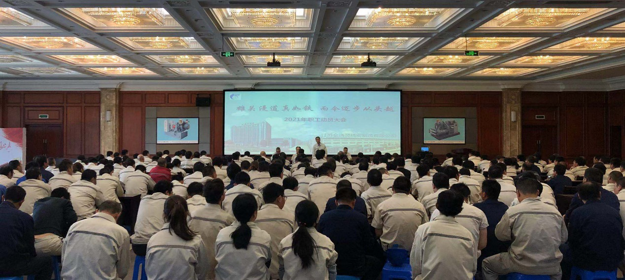 最后,總經理來逢政在大會上發表講話,首先肯定了自公司成立以來,從最初的組建走向成熟所取得的進步及成績,他指出公司在2020年市場大環境惡劣的情況下還能逆勢發展與公司每一位員工的努力付出密不可分。今年公司面臨的內外部市場交付壓力更大,對生產效率、服務質量也提出了更高的要求,與此同時也伴隨著更大的發展潛力和機會,公司上下要擰成一股勁,保質保量的按時交付訂單,提升公司的生產規模,穩定生產車間的產值效益,提高職工收入水平,讓每位員工獲得發展機會,和金通靈共同成長。 |