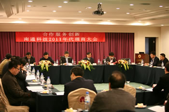 公司董事長陳照東會上感謝各代理商對南通科技的支持及貢獻,介紹了去年公司產品研發、管理創新及企業文化建設等方面所取得的成績,闡述了新年度公司發展戰略,即堅持不懈地以替代進口為目標,進一步調整產品銷售結構,擴充細分市場,加強渠道的管理和市場的維護,保障經銷商的權利和利益。他真誠希望各代理商和公司精誠合作,以共贏合作為基礎,在廣闊的營銷渠道中建立更多、更持久的利益共同體,順利完成全年目標。