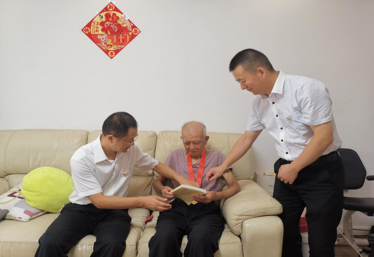 6月29日上午,國融公司黨委書記劉海兵、黨委副書記王冠榮帶領公司支部書記和黨員代表,慰問在黨50年以上的老黨員,向他們致以誠摯的問候,送上“光榮在黨50年”紀念章。