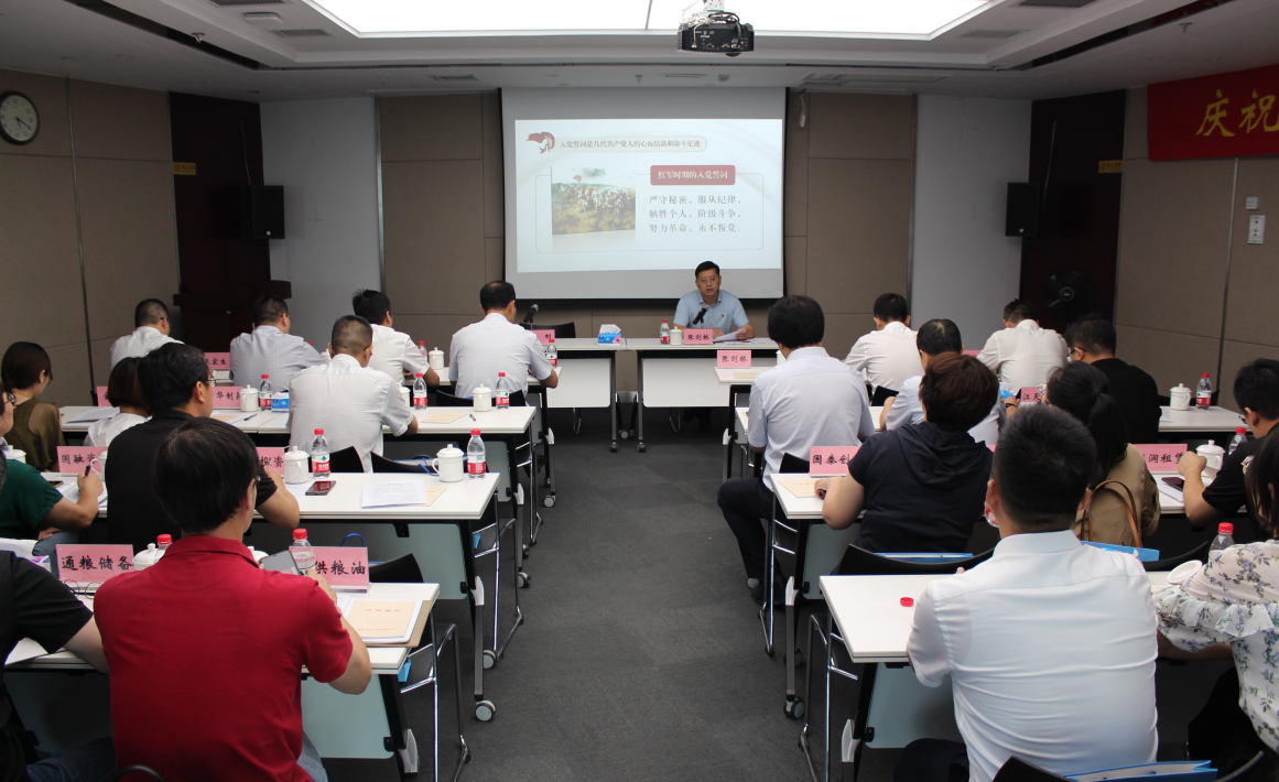 參觀結(jié)束后,張劍橋帶領(lǐng)大家在黨旗下重溫入黨誓詞,并以《重溫入黨誓詞 踐行初心使命》為題,從“入黨誓詞是幾代共產(chǎn)黨人的心血結(jié)晶和奮斗足跡”“踐行入黨誓詞不容絲毫偏差”“信守誓言必須一諾千金、終身無悔”等幾個(gè)方面,給大家上了專題黨課。