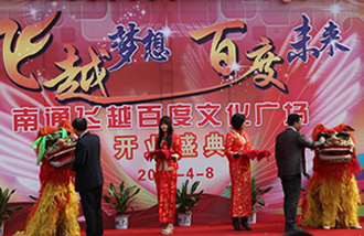 ——任港路機電園“華麗轉身” 經過一年改造建設和精心籌備,4月8日,南通市首個集文化休閑、餐飲賓館、時尚購物等商業業態為一體的文化創意產業集聚區——飛越百度文化廣場正式開業亮相。市政府徐輝副市長、徐國祥副秘書長、崇川區黃衛鋒副區長、產控集團陳照東董事長等貴賓出席開業慶典。 陳照東董事長應邀在開業慶典上致辭,他指出,飛越百度文化廣場是產控集團在“十二五”時期引資打造的四個都市產業園區之一,開局之年率先建成,對集團順利實現五年跨越發展目標具有重要指導意義和帶動作用。集團將搶抓產業轉型新機遇,著力發展新產業,努力探索資產經營新機制;積極為文化事業發展提供有力保障, 為“飛越百度”發展提供從資源到市場的全方位服務,努力將其打造成集團重點發展的產業板塊。他希望,“飛越百度”的投資方能把握文化產業發展的脈搏,打造貼近百姓生活、代表先進文化的大舞臺,在規范管理、安全環保、依法納稅等方面誠信經營,使“飛越百度”得到政府、百姓和社會的廣泛認可。 開業慶典上,徐輝副市長與“飛越百度”董事長仇國祥共同為醒獅點睛,并與其他貴賓一道為廣場開業剪彩。產控集團副董事長徐憲華、常務副總經理陸強新等應邀參加開業慶典。 南通飛越百度文化廣場項目是市政府第三產業及文化產業的雙優重點項目,由南通產控集團利用閑置工業廠房聯合寧波飛越時空企業管理有限公司合作開發。該項目占地約26040平方米,總建筑面積27380平方米,項目投入運營后預計年均銷售收入1.5億元,實現利稅5000萬元,安排就業就業崗位2000人左右。