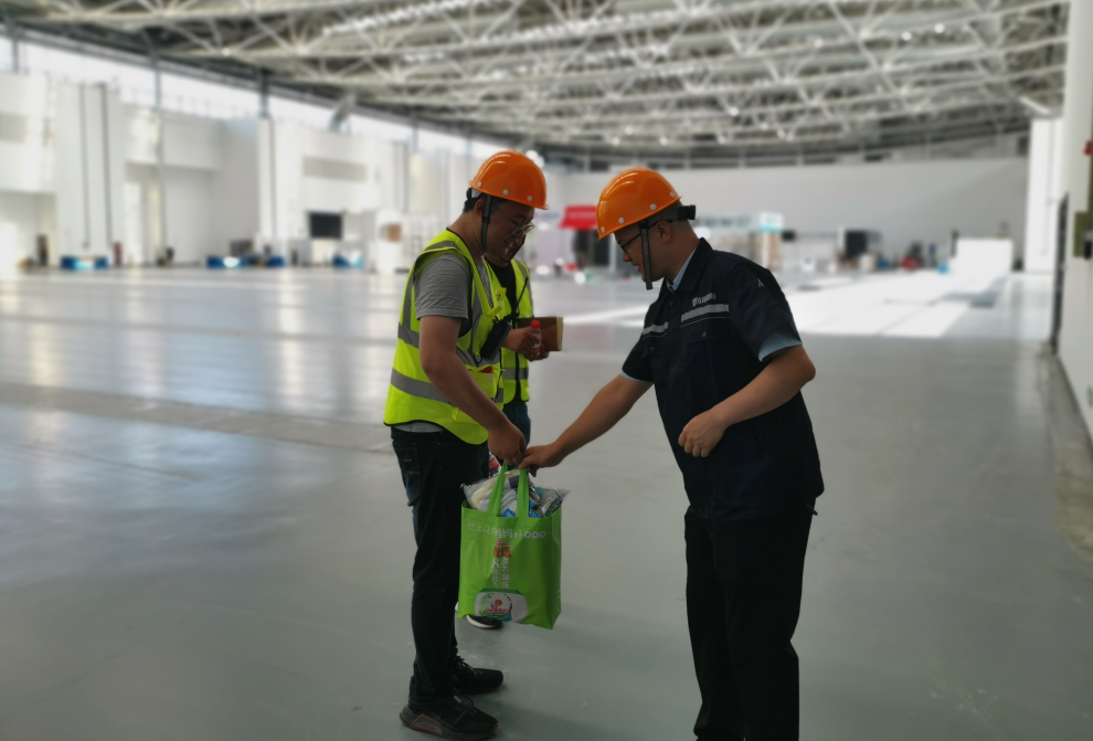 孫濤在國際會議中心詳細詢問了員工項目現場工作推進情況,并送來了飲料、毛巾、花露水等防暑降溫物資。孫濤代表公司對員工不畏高溫、盡職負責的辛勤工作表示衷心感謝,并叮囑大家在高溫天氣務必做好防暑降溫工作,既要完成工作,更要確保身心健康,時刻注意施工安全。 孫濤還對項目現場施工作業(yè)安全情況進行了認真全面的檢查,要求現場負責人要加強場地的安全管理,特別強調要認真做好防暑降溫措施,確保員工身體健康,保障公司工作順利開展。 一句句貼心的話語和叮嚀,讓一線職工在炎熱的夏季感到了絲絲清涼。一聲聲親切的問候和贊譽,進一步激勵了一線職工的工作熱情。大家感謝領導的關心和關懷,紛紛表示將繼續(xù)堅守各自崗位,加倍努力,保障安全,堅持不懈地戰(zhàn)高溫、重安全、保質量,圓滿完成各項任務。 |