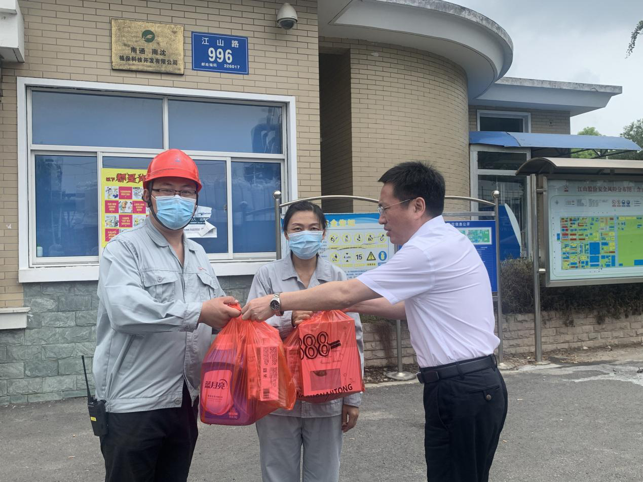 夏末秋至,高溫持續。近日,公司黨總支書記、董事長、總經理沈利、副總經理張志華等分別帶隊,走訪慰問開發區生產一線職工,并帶去炎炎夏日的慰問。