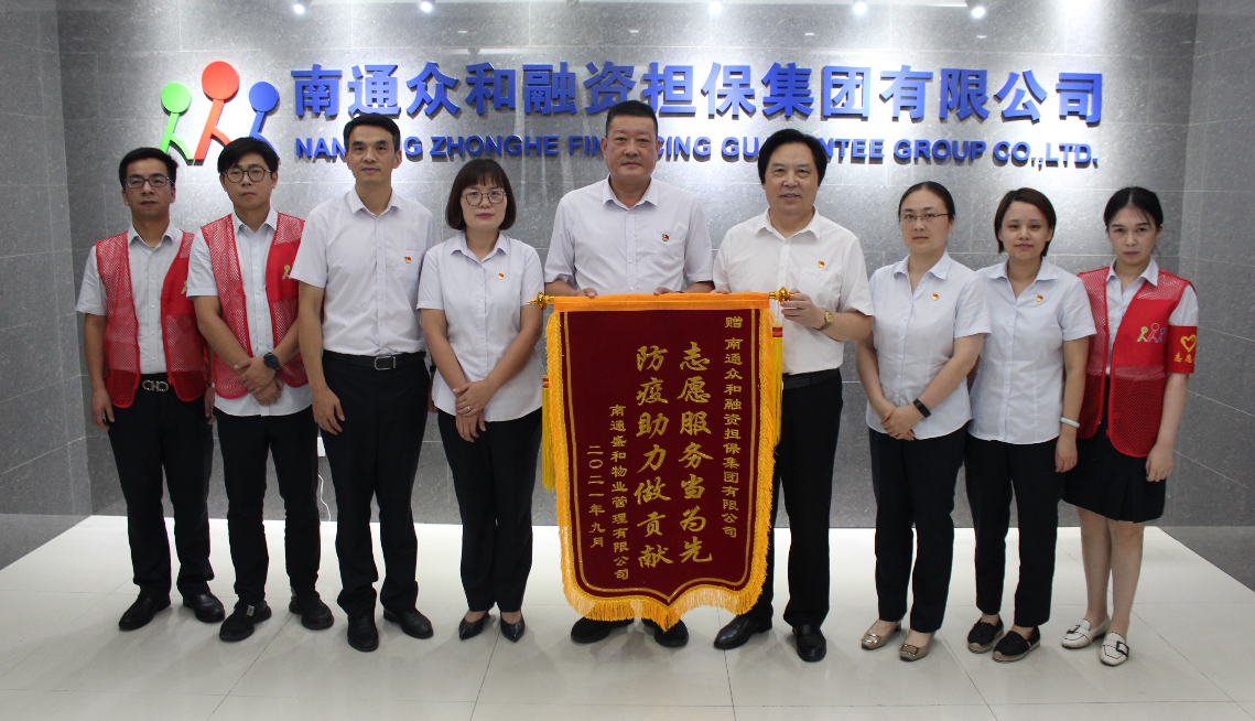 9月6日下午,南通盛和物業(yè)有限公司黨支部書記兼總經(jīng)理劉曉軍、副總經(jīng)理高曉蓉一行向眾和擔保送來了印有“志愿服務當為先 防疫助力做貢獻”字樣的錦旗,誠摯感謝眾和擔保在盛和物業(yè)駐啟瑞廣場防疫工作人手緊張的關鍵時期,迅速組建了一支40名青年黨員、業(yè)務骨干構成的“兩在兩同 同心抗疫”志愿者服務隊。他們利用工作之余,起早貪黑,放棄午休,不辭辛苦,堅守在防疫一線。從測溫驗碼到秩序維護,從交通疏導到卡口管理,哪里需要就到哪里,為啟瑞物業(yè)防疫工作作出了積極貢獻,也得到了啟瑞廣場業(yè)主的點贊,充分彰顯了國有企業(yè)責任擔當。