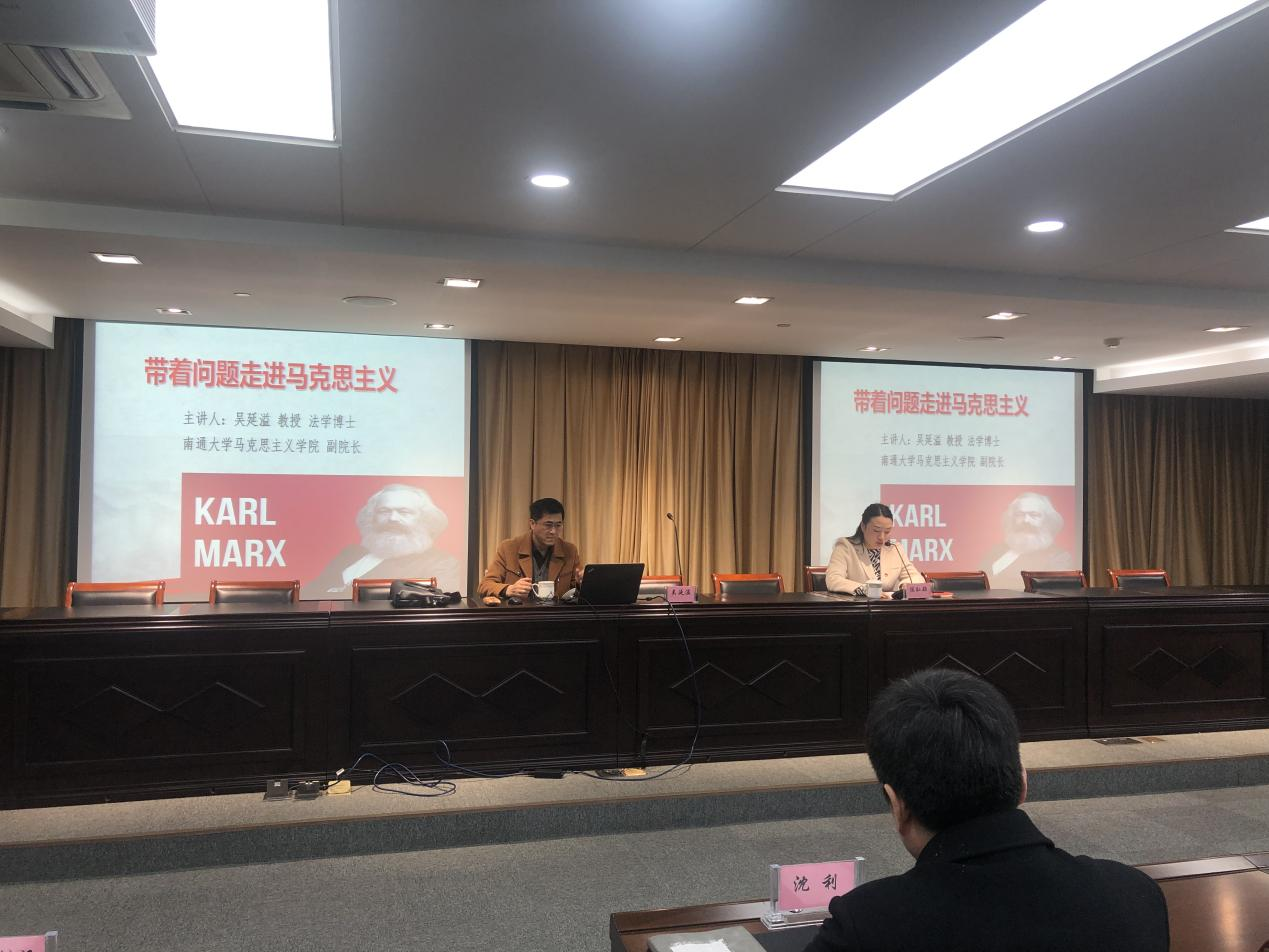 作為人類思想史上最偉大的科學思想體系,馬克思主義時至今日依然閃爍著耀眼的真理光芒。吳延溢教授以“帶著問題走進馬克思主義”為主題,列舉并逐條解答“馬克思離我們有多遠;等于馬克思就是馬克思嗎;你姓馬嗎?你信馬嗎;馬克思主義是東方的還是西方的;唯物主義=正確、唯心主義=錯誤、辯證法=正確、形而上學=錯誤嗎;馬克思主義融化在你我之中了嗎?”六個問題,創新方式對馬克思主義進行了深入淺出的講解。馬克思主義從創立至今,不僅深刻改變了世界,也深刻改變了中國。從馬克思主義的誕生到習近平新時代中國特色社會主義思想的形成,馬克思主義在斗爭中誕生、在革命中發展、在實踐中創新,并且不斷開辟馬克思主義中國化新境界。