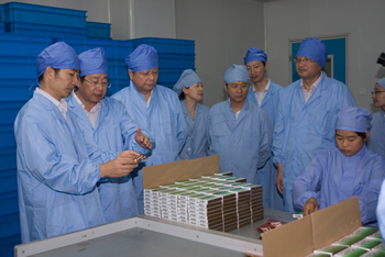 9月12日上午,南通市政府朱晉副市長、陸善平副秘書長一行來到精華制藥集團股份有限公司調(diào)研醫(yī)藥產(chǎn)業(yè)發(fā)展工作。在王氏保赤丸生產(chǎn)車間,朱市長詳細詢問了產(chǎn)品銷售、市 場前景、質量控制等方面的情況,他強調(diào),精華制藥集團擁有王氏保赤丸、季德勝蛇藥片等一批療效確切的知名產(chǎn)品,企業(yè)要在發(fā)揮品牌影響、加強質量管控、擴大企業(yè)規(guī)模、促進轉型升級上下功夫。朱市長要求食品藥品監(jiān)管部門要進一步加強服務力度,在加強藥品質量監(jiān)管、保障藥品質量安全的同時,發(fā)揮職能優(yōu)勢幫助企業(yè)解決發(fā)展中的突出問題。 南通市食品藥品監(jiān)管局戴輝局長、市政府辦公室孫寶軍副主任陪同調(diào)研,精華制藥朱董事長匯報了企業(yè)的基本情況和促進醫(yī)藥產(chǎn)業(yè)發(fā)展的思路和舉措。