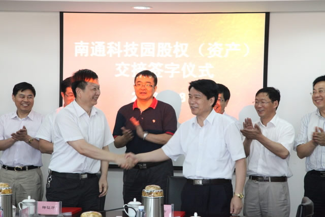 7月15日,南通科技園股權交接簽字儀式在產控集團會議室舉行。南通市科技局局長朱千波、產控集團董事長杜永朝代表交接雙方簽訂交接協議,黃愛軍副市長、王國平副秘書長、財政局潘衛斌副局長、國資委曹康副主任、規劃局徐相東副局長、科技局沈衛堅副局長、產控集團錢衛峰副總經理、南通科技園沈風雷總經理等參加簽字儀式并為簽約見證。 本次劃轉給產控集團的資產包括南通科技園持有的科技園、軟件園和機電園3個園區的土地和房屋,全部權益價值約8.8億元,賬面總資產約5.3億元。產控集團董事長杜永朝表示,資產移交后,產控集團將整合好南通科技園現有資源,加快南通產業技術研究院有限公司的組建工作,按照市委、市政府“全面落實科技創新工程,加快推進我市國家創新型城市建設”的總要求,努力做好資產管理、項目引進、園區建設和成果轉化等工作,力爭通過幾年努力,把南通產業技術研究院建成在國內外具有較強影響力和特色明顯的產業技術創新中心和科技創新示范區。南通市科技局朱千波局長代表資產移交方發言時指出,產控集團作為國有控股公司有更多的市場資源和市場經驗,可以更好的整合南通科技園資產。他表態說,市科技局將一如既往的支持南通產業技術研究院的建設、發展工作,讓產業研究院積聚更多的科技資源,為南通市穩發展、促轉型提供更多支持。 黃愛軍副市長最后做重要講話。他指出,南通產業發展走科技創新之路是必然趨勢,但依靠科技來發展經濟又會面臨投入大、過程長、結果不確定、企業不習慣等問題,是一個痛苦而漫長的過程。南通科技園股權、資產從南通科技局整體劃轉到南通產業控股集團,是市委、市政府為南通產業園區發展選擇的一條新路,是一條不同于其他城市的市場化發展道路。產控集團要把市場機制引入產業研究院,激發科研創新主體的活力,努力把產控集團自身轉型升級的需要和產業研究院的發展結合起來,促進科技和產業的融合發展。黃愛軍副市長要求,產控集團要從科技局手里接好棒,按計劃和時間節點要求完成產業研究院的組建及運營工作,將科研創新與市場運作緊密結合,力爭早出成果,出大成果,努力為全市經濟社會的協調發展做出更大貢獻!