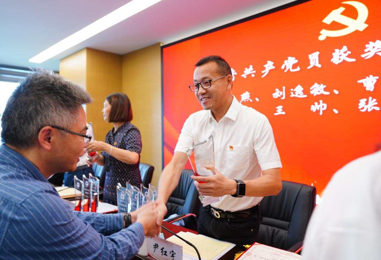 大會,在嘹亮的國歌聲中拉開了帷幕。會上,集團黨委副書記錢衛峰宣讀了《關于表彰優秀共產黨員、優秀黨務工作者的決定》和《關于表彰優秀共青團員、優秀團干部、五四(流動)紅旗團支部的決定》。集團黨委班子成員分別向26名優秀黨員、7名優秀黨務工作者,10名優秀共青團員、6名優秀共青團干部以及五四紅旗團組織獲得者分別頒發了獎杯、榮譽證書和流動紅旗。 會上,曹燕紅帶領8名新黨員舉行入黨宣誓儀式,全體黨員肅穆起立,莊嚴宣誓,老黨員重溫入黨誓詞。 會上還對10名整齡黨員開展了集體過政治生日活動,送上了政治生日蛋糕和賀卡,給予了政治生日的祝福。具有30年黨齡的東力化工黨支部書記王???span>和10年黨齡的資產財務部會計陸丁利,分別代表老黨員和青年黨員做了代表發言,他們結合自身經歷,生動了闡述了近年來企業的發展變化、和高質量發展所取得成績,以及自身成長的變化,并號召全體黨員要牢記使命,跟黨走,在推動打造精華“百年老店”的新征程上再立新功!