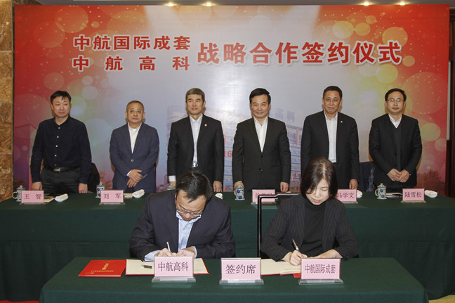 當天,吳獻東、徐新民及有關部門領導共同見證了中航航空高科技股份有限公司與中航國際成套設備有限公司戰略合作協議簽字儀式。雙方以中非職業教育合作項目為突破口,響應國家“一帶一路”戰略,充分發揮各自優勢,實現裝備產品和技術服務出口,打造中國品牌。中航工業集團產業拓展部、中航國際、中航國際成套、中航高科的有關領導參加了調研和戰略合作協議簽字儀式。